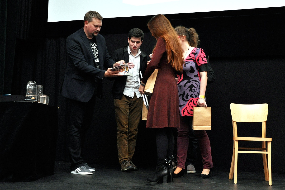 Autoři Barbora Kudrnová, Barbora Novotná, Václav Dvořáček a Bohumil Matějovský převzali od redaktora Honzy Kravčíka diplomy i věcné ceny v podobě knih a zejména tovaryšského orlího brku, se kterým prý jde psaní samo.